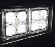 The 'C' variant lens features a rounded rectangle pattern that disperses light in a 60 degree cone. Typically used in parking lots or walk areas in a vertical position.