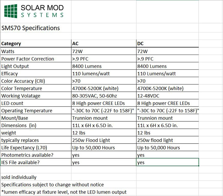 The SMS70 series lights can meet the toughest illumination requirements, in the most rugged environments, with their 8400 lumen output LEDs and variable lensing options you'll never be left in the dark again. Protected by reinforced steel housing with our double coat process for durability and protection, the SMS70 can take a beating, as well as weather the elements with their IP66 rated internals. All the while staying cool with our custom forged aluminum heatsinks and an efficient draw of 72 watts.