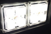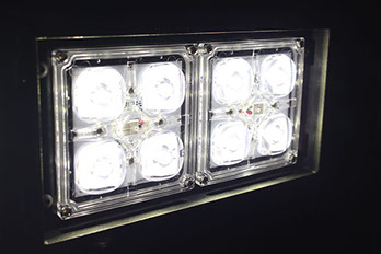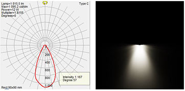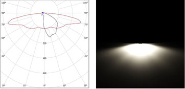The 'A' variant lens features a symmetrical round pattern dispersing light in a 60 degree cone. Used as a flood light while horizontal, and a wall wash or down light (such as for a parking lot) while vertical.